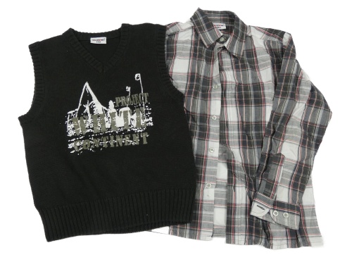2set - Tmavomodro-bielo-červená kockovaná košile + antracitová svetrová vesta s potlačou Pocopiano