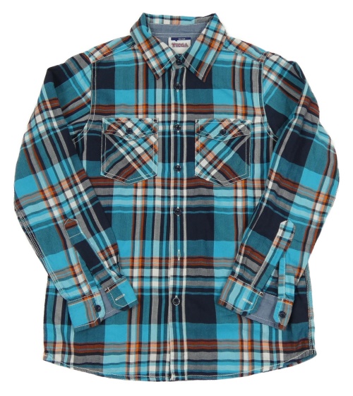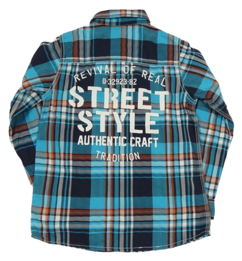 Modro-čierno-červená kockovaná košeľa s nápismi Yigga