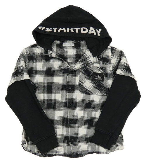 Čierno-biela kockovaná košeľa s teplákovymi rukávy a kapucňou Zara