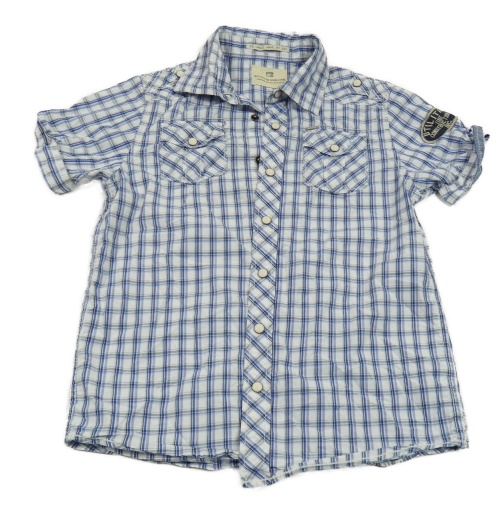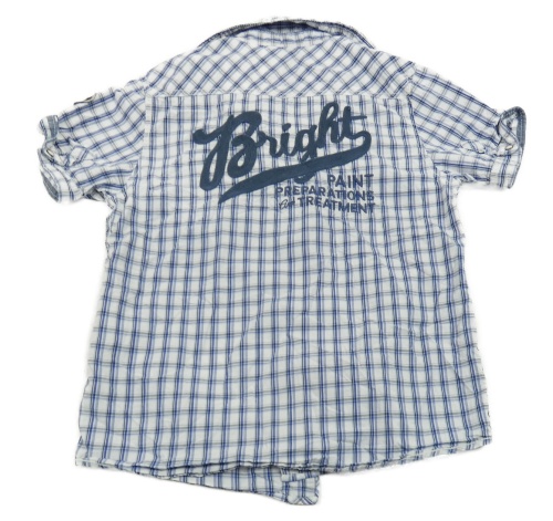 Bielo-modrá kockovaná košeľa s nápisom