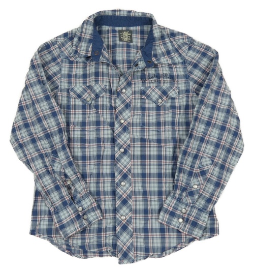 Tmavomodro-světlemodro-ružová kockovaná košeľa s nápismi H&M