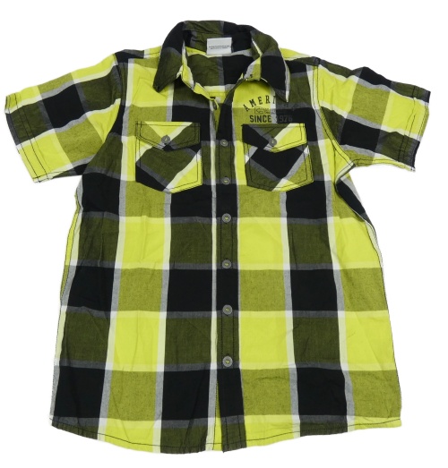 Čierno-žlutozelená kockovaná košeľa s nápisom Yigga