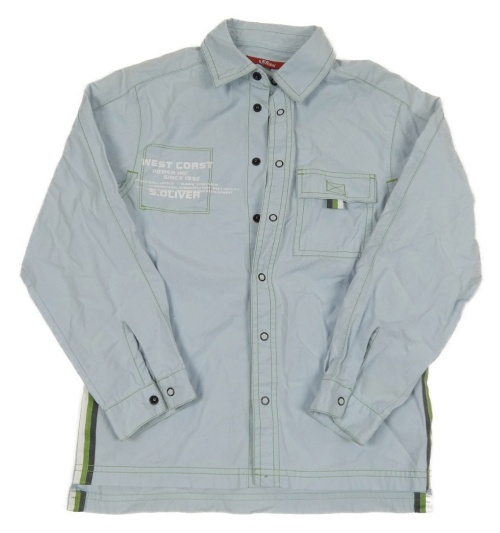 Svetlomodrá plátenná košeľa s nápismi a číslom S. Oliver