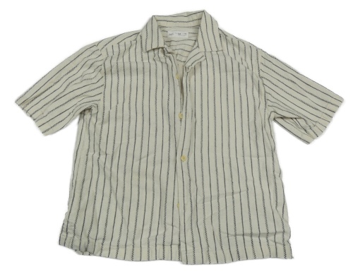 Světlebéžovo-čierna pruhovaná ľanová košeľa Zara