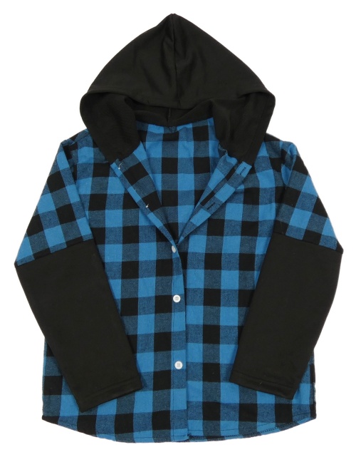 Modro-čierna kockovaná košeľa s kapucňou Shein