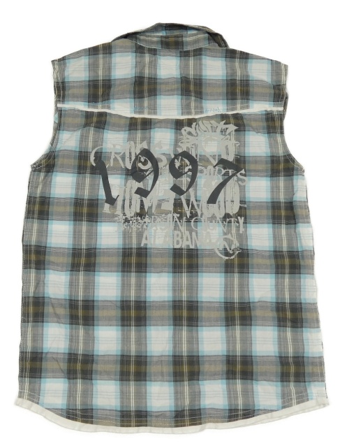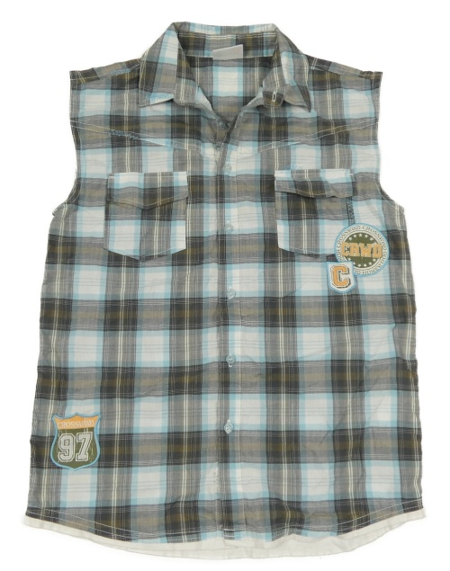 Hnedo-modrá kockovaná košeľa s vreckami a nášivkami