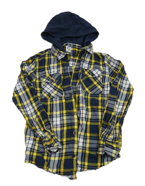 Tmavomodro-bielo-žltá kockovaná košeľa s teplákovou kapucňou