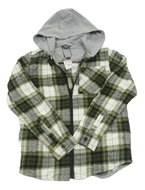 Nové - Olivovo-bielo-sivá kockovaná flanelová košeľa s kapucňou Primark