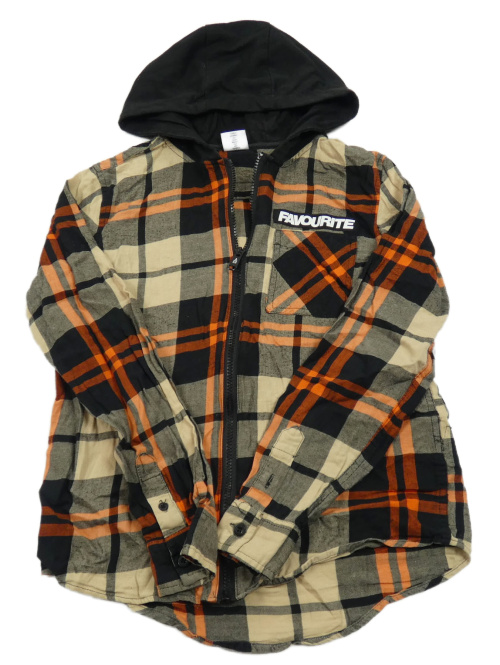 Béžovo-čierno-oranžová kockovaná košeľa s nápisom a kapucňou Chapter young