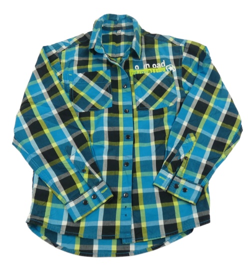 Modro-čierno-žltá kockovaná košeľa s nápisom C&A