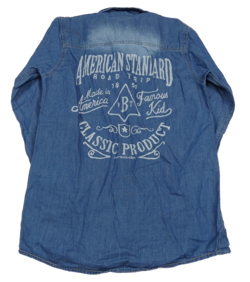 Modrá ľahká rifľová košeľa s nápismi Vertbaudet