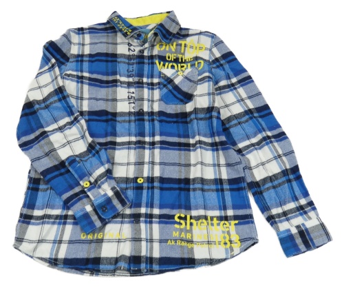 Modro-biela kockovaná flanelová košeľa s nápismi Original Marines
