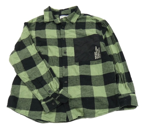 Zeleno-čierna kockovaná flanelová košeľa s vreckom s nápisom Zara