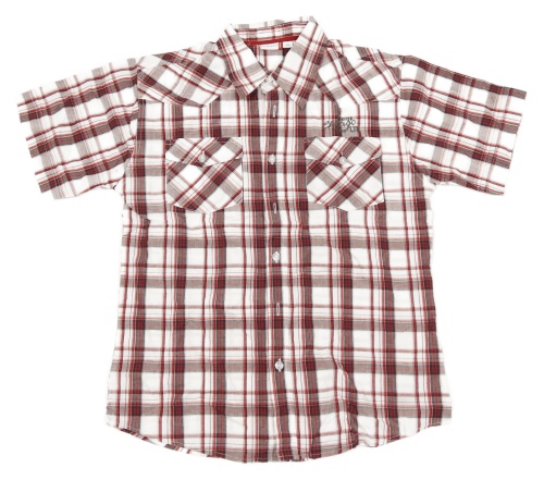 Bielo-červeno-čierna kockovaná košeľa s nápismi HOT&SPICY