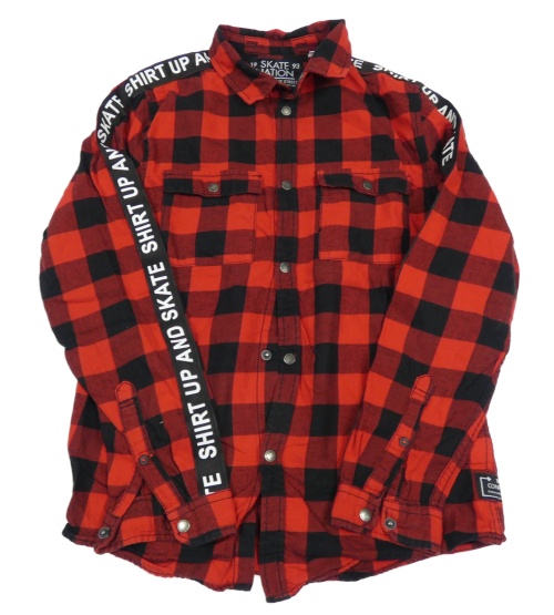 Červeno-čierna kockovaná košeľa s nápismi C&A
