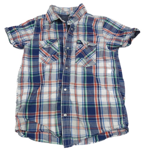 Tmavomodro-bielo-zeleno-červená kockovaná košeľa