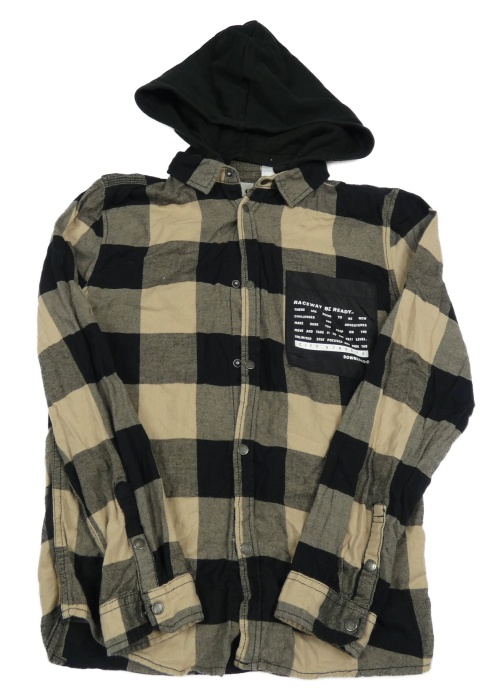 Béžovo-čierna kockovaná košeľa s nápisom a teplákovou kapucňou C&A
