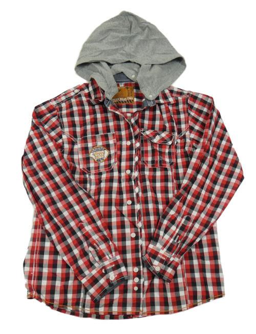 Červeno-čierno-biela kockovaná košeľa s kapucňou C&A