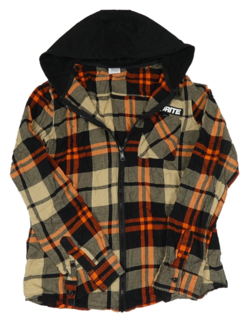 Hnedo-čierno-červená kockovaná košeľa s nápisom a kapucňou Chapter young