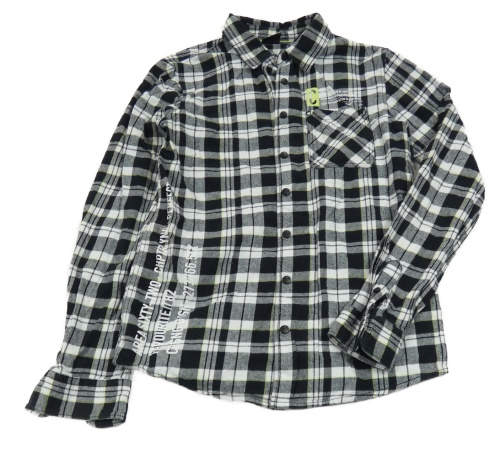 Čierno-biela kockovaná flanelová košeľa s nápismi Chapter Young