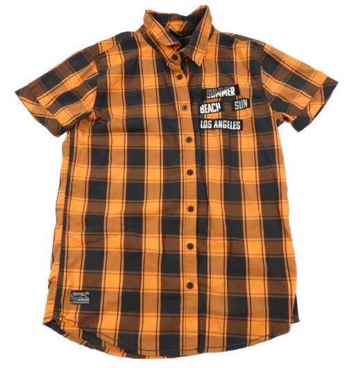 Čierno-oranžová kockovaná košeľa s nápisom CHapter Young
