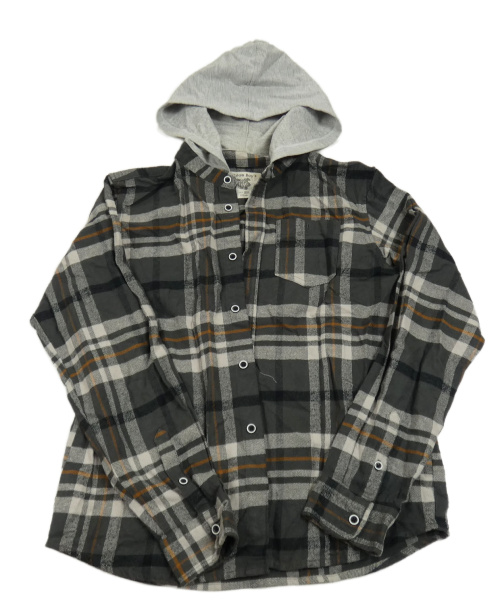 Sivo-čierno-oranžová kockovaná košeľa s kapucňou
