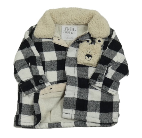 Čierno-biela kockovaná podšitá košeľa s vreckom s medvěďom F&F