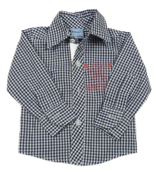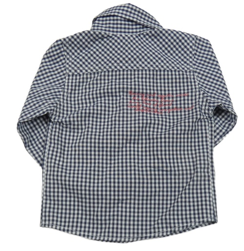 Tmavomodro-biela kockovaná košeľa s nápisom