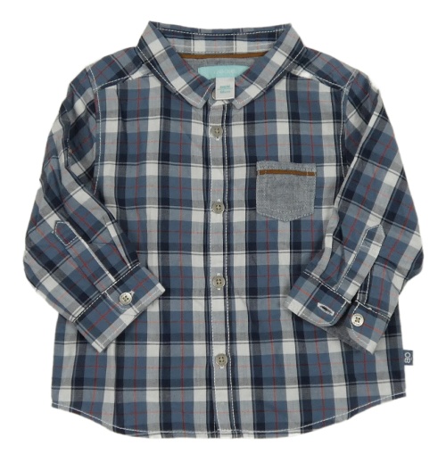 Modrošedo-tmavomodro-biela kockovaná košeľa OBaïBi
