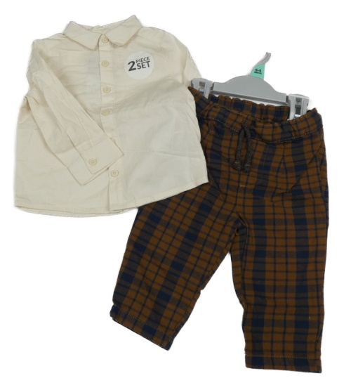 Nové - 2set - Béžová košile + hnedo-tmavomodré kockované nohavice