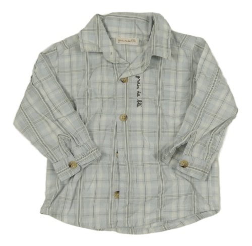 Světlemodro-sivo-biela kockovaná košeľa s nápisom