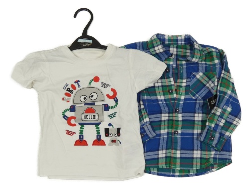 Nové - 2set - Farebná kockovaná košile + biele tričko s robotom Dunnes