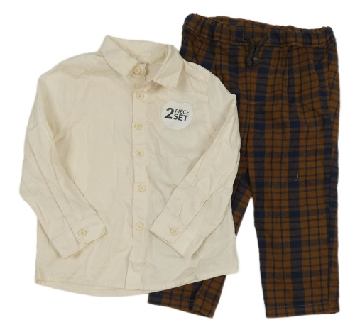 Nové - 2set - Svetlobéžová košile + hnedo-tmavomodré kockované teplákové nohavice Pep&Co