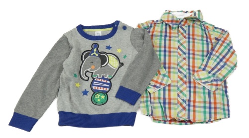 2set - Bielo-farebná kockovaná košile + sivo-modrý sveter so slonom C&A