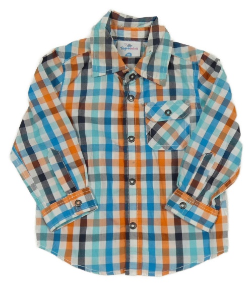 Modro-bielo-oranžová kockovaná košeľa s vreckami Topomini