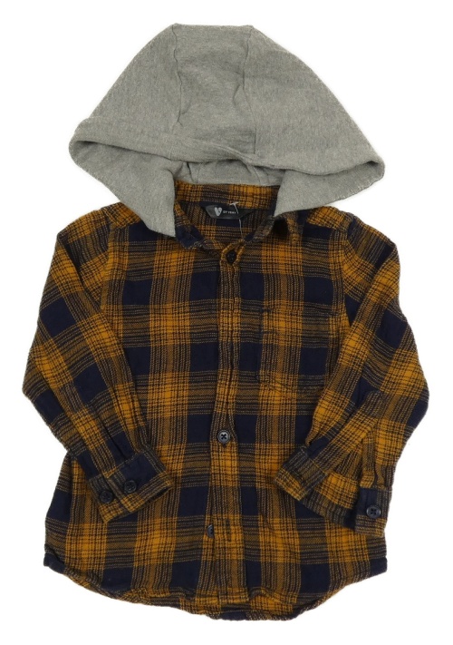 Tmavomodro-hořčicovo-sivá kockovaná košeľa s kapucňou V by Very