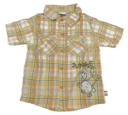 Oranžovo-bielo-zelená kockovaná košeľa s opičkou