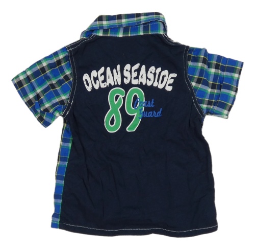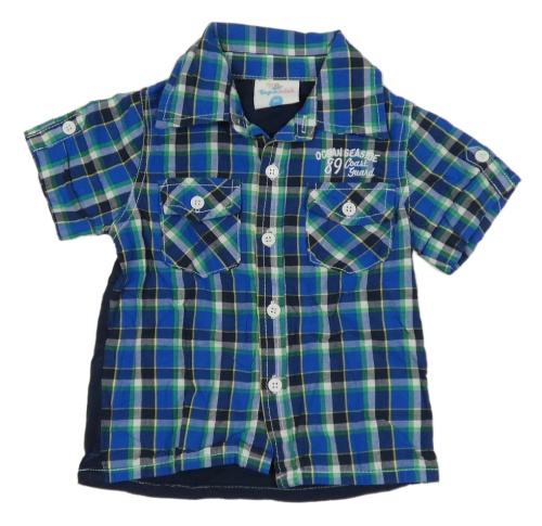 Cobaltovoě modro-bielo-zeleno-tmavomodrá kockovaná košeľa s číslom a nápismi Topomini