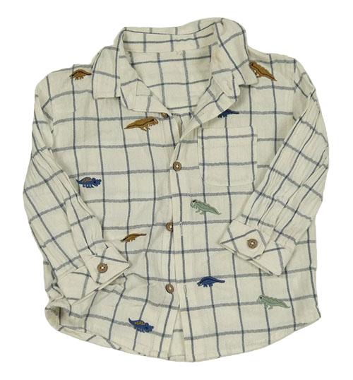 Smetanovo-modrošedá kockovaná ľanová košeľa s dinosaurami George