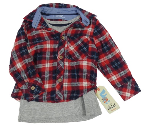 Nové - 2set Červeno-tmavomodrá kockovaná košile + sivé tričko Rebel
