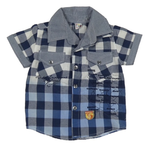 Tmavomodro-biela kockovaná košeľa s výšivkami