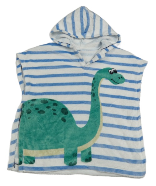 Bielo-modré pruhované plyšové pončo s dinem a kapucňou Shein