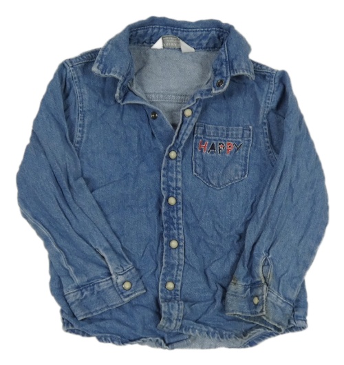Modrá rifľová košeľa s nápisom PRIMARK