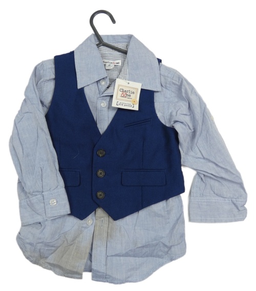 -Nové 2set- modrá košile+ tmavomodrá vesta