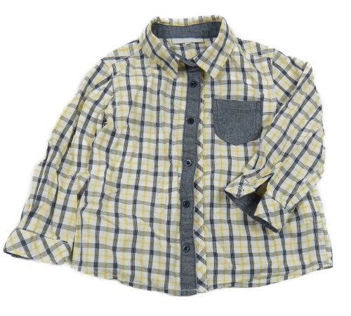 Bielo-žlto-tmavomodrá kockovaná košeľa