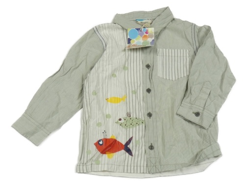 Nové - Kaki-smotanová pruhovaná košeľa s rybkami