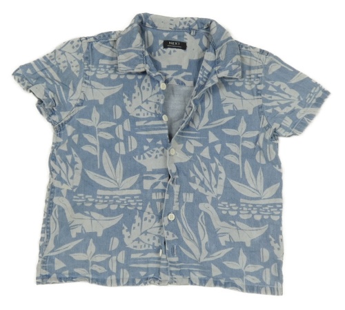 Svetlomodrá rifľová košeľa s dinosaurami a listami Next