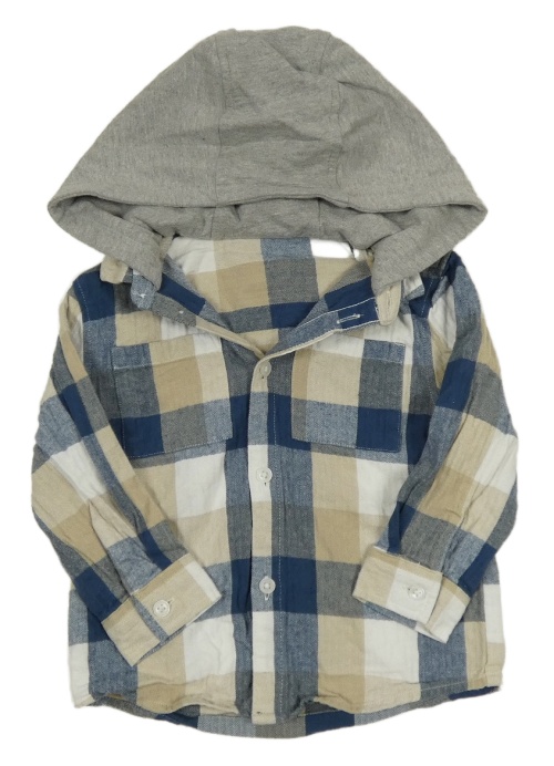 Tmavomodro-bielo-béžová kockovaná košeľa s kapucňou George