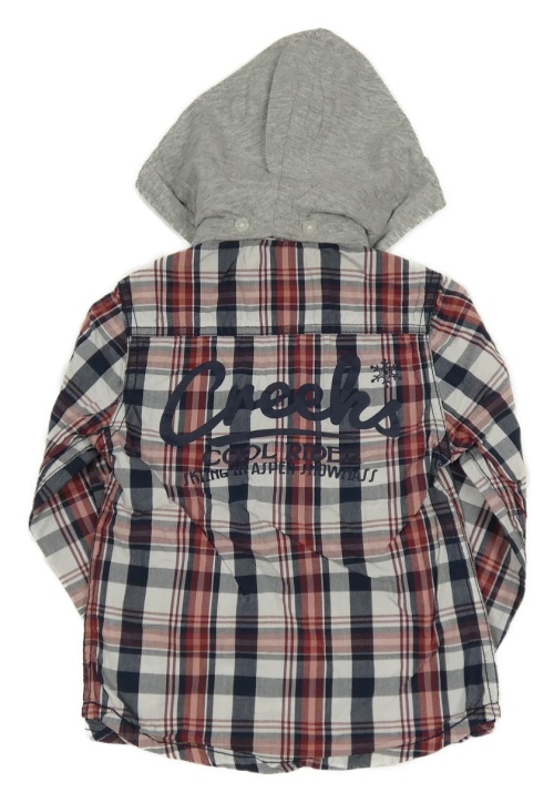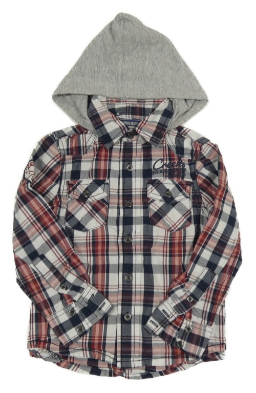 Tmavomodro-bielo-červená kockovaná košeľa s kapucňou