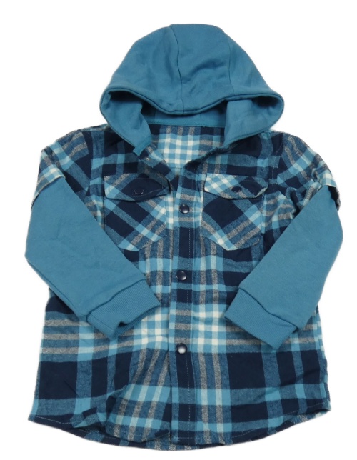 Modro-biela kockovaná košeľa s teplákovymi rukávy a kapucňou Dunnes Stores